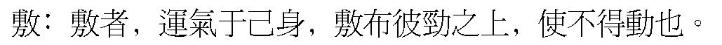 Fu - covering1: move qi throughout your body; use it to cover your opponent’s force so that he cannot move.