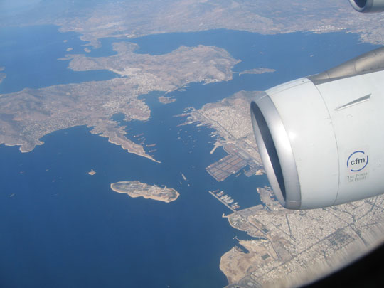 in addition to the 9.5-hour flight from New York to Athens, but we made it. We really