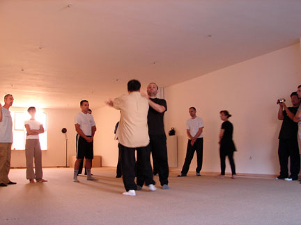 In the first four-hour seminar lesson, Shifu explained Taiji application principles and showed different examples to the students. In the end, we heard