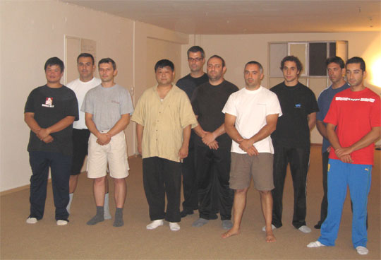 Sifu Dervenis, Shifu Zhang, and students