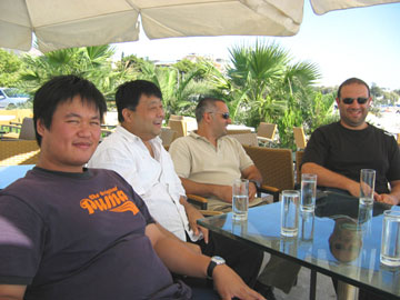 We were warmly welcomed by two members of the Greek group, Irini and George. Both are practitioners of Neijia. Irini practices and teaches the Wu style Taiji 16-posture form as taught to her by Great Grandmaster Wang Peisheng. George is a practitioner/instructor of Xingyi, Hebei style and Pammachon with an extensive gongfu/Jujutsu and Chinese Neigong background. He loves Wu Taiji too. George is noticeable. He is powerful and large, well over 200 pounds, and very friendly, cordial, and well spoken. They asked us if we were tired and, of course, we were because we had been awake for over 20 hours. We wanted to stay awake, however, to overcome our jet lag, especially since we had a 6-day seminar ahead of us.