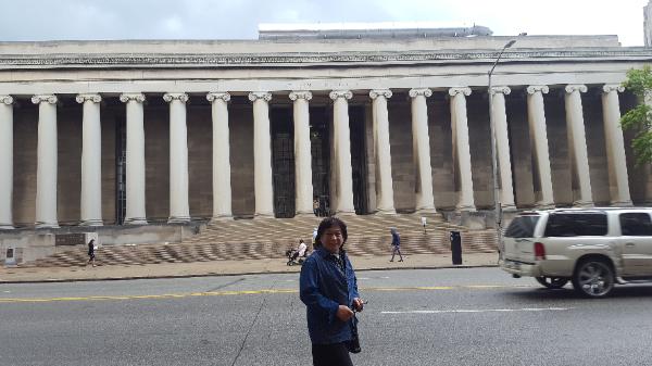 岁月的痕迹—背景梅隆研究所石柱上的黑